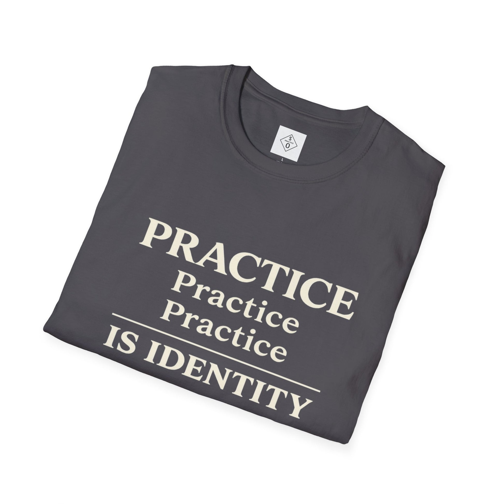 Part of the SO PRACTICE Signature Collection, this stacked “Practice Is Identity” tee visually represents repetition — the foundation of growth.