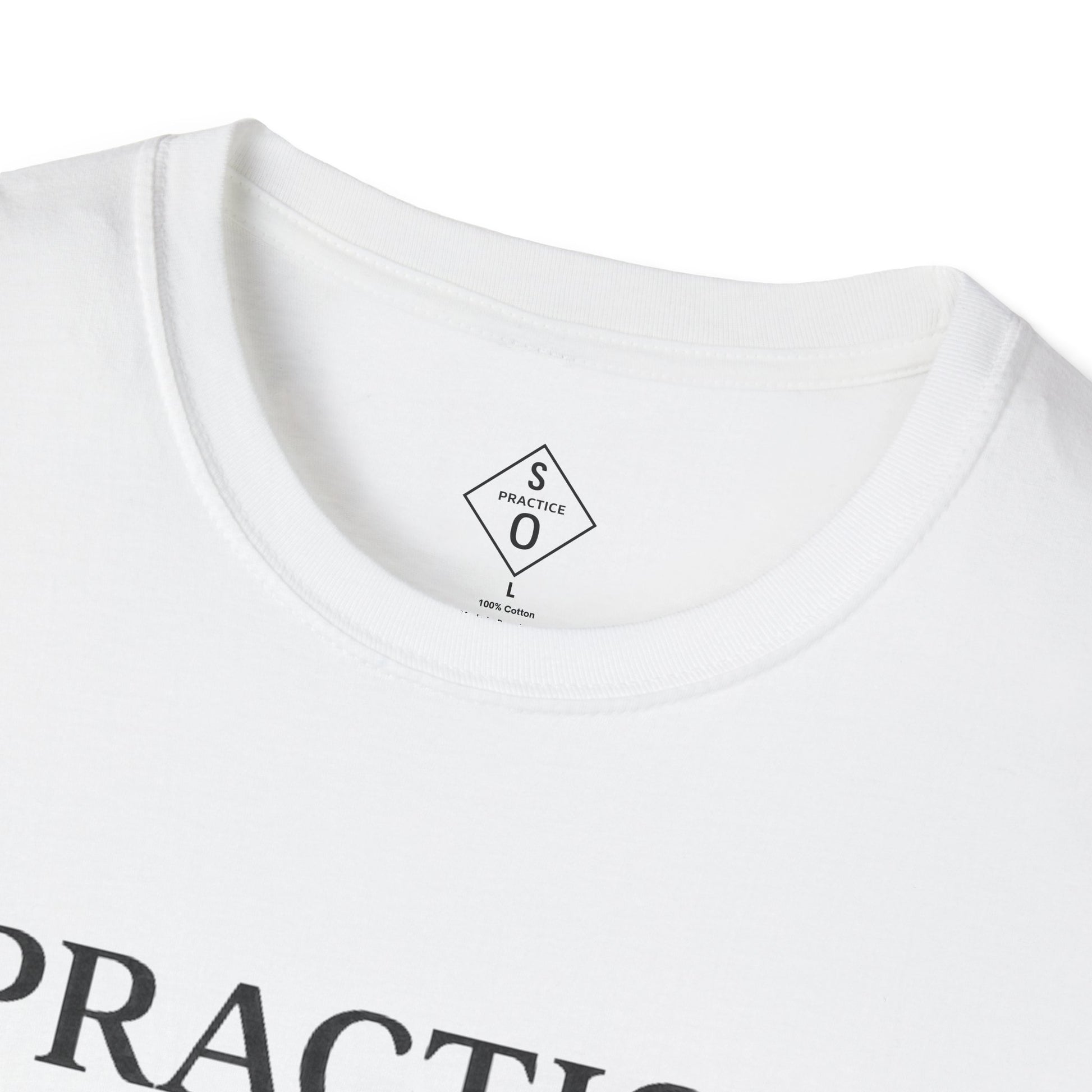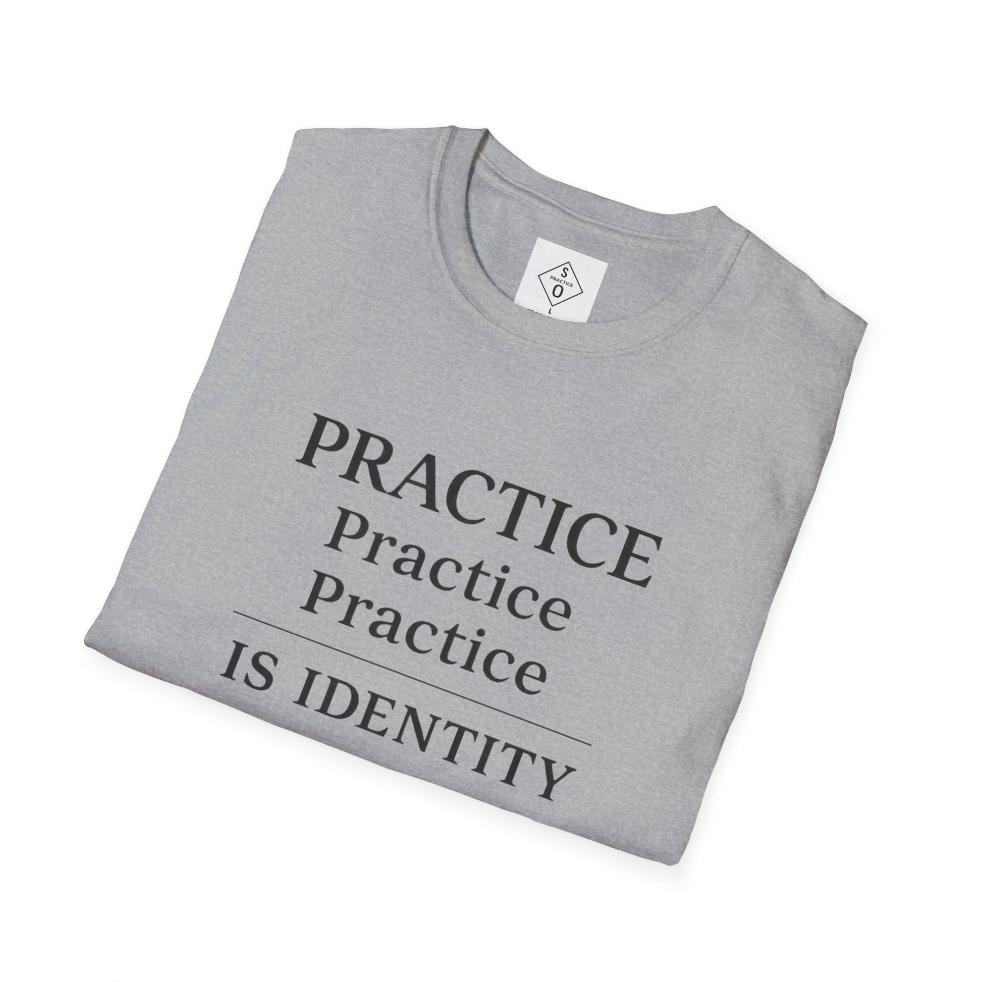 The repeated “Practice” layout visually reinforces the truth: who you become is shaped by what you repeat. Designed for creators, professionals, and self-directed individuals committed to growth, this minimalist graphic tee makes a calm but clear statement.