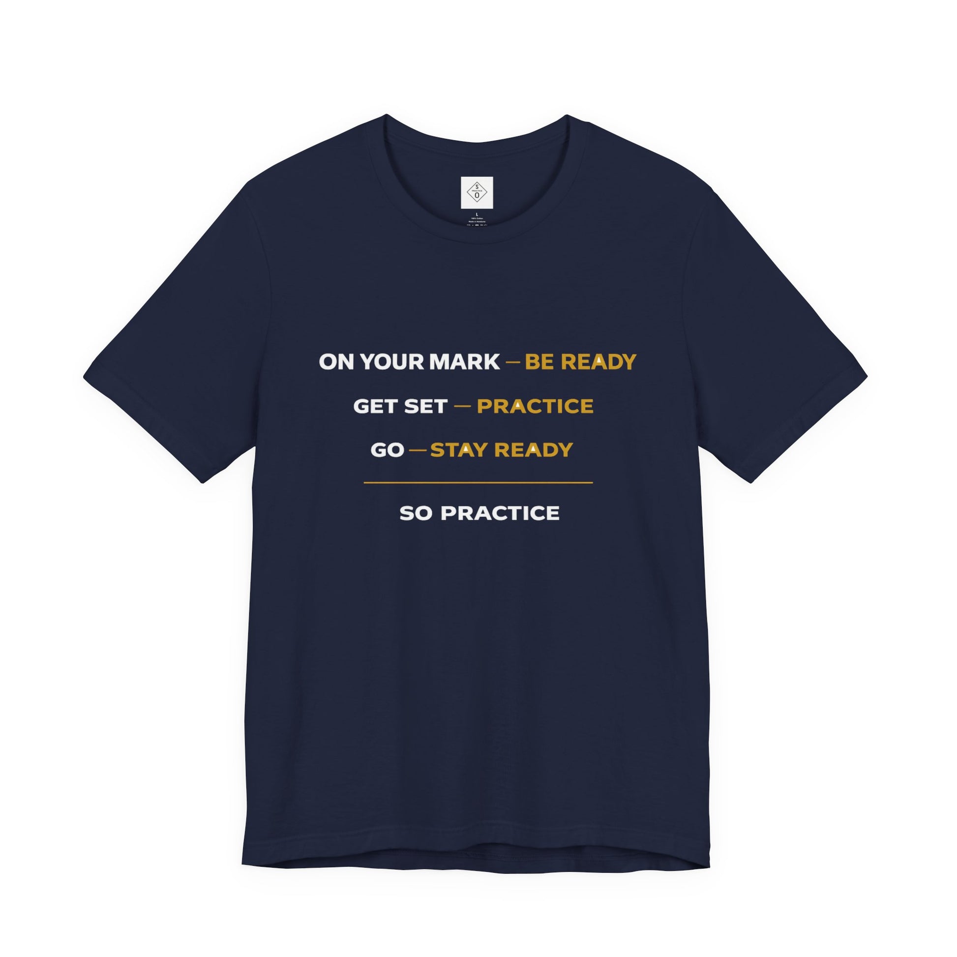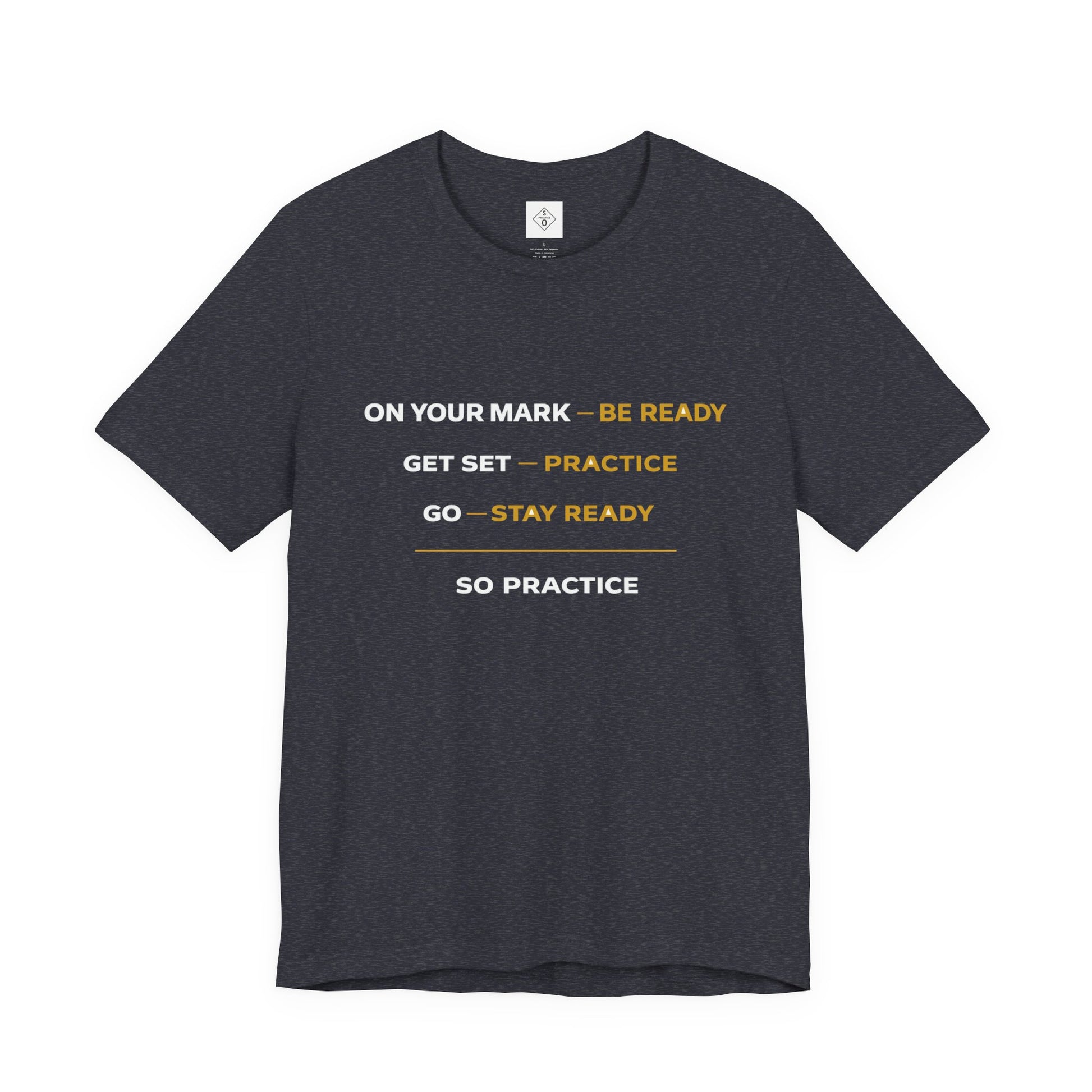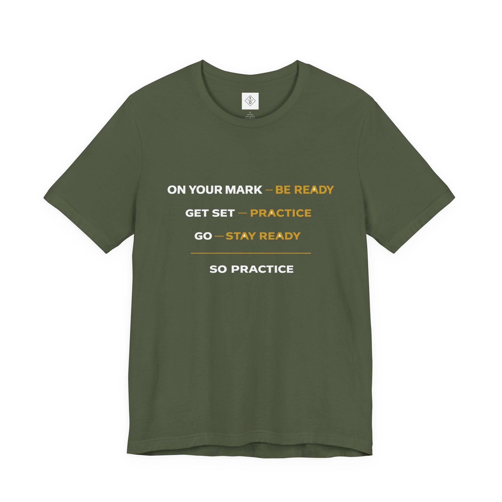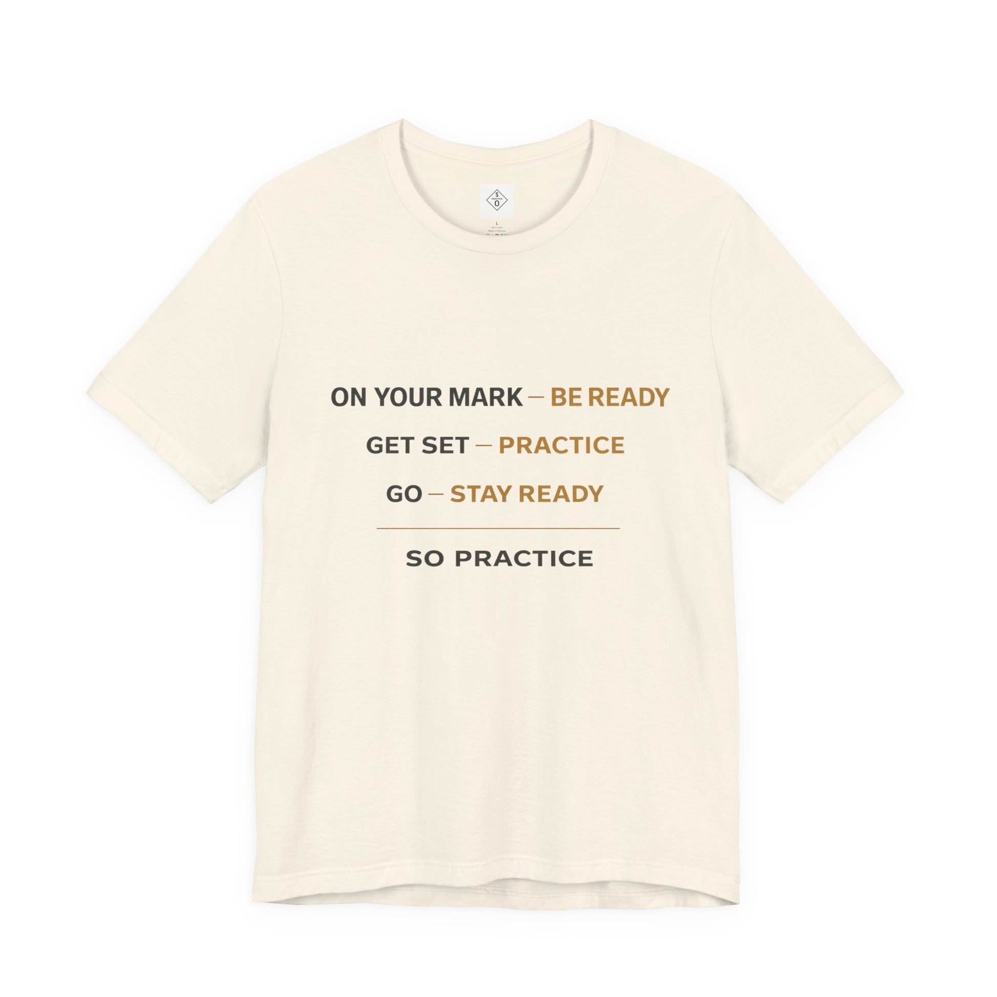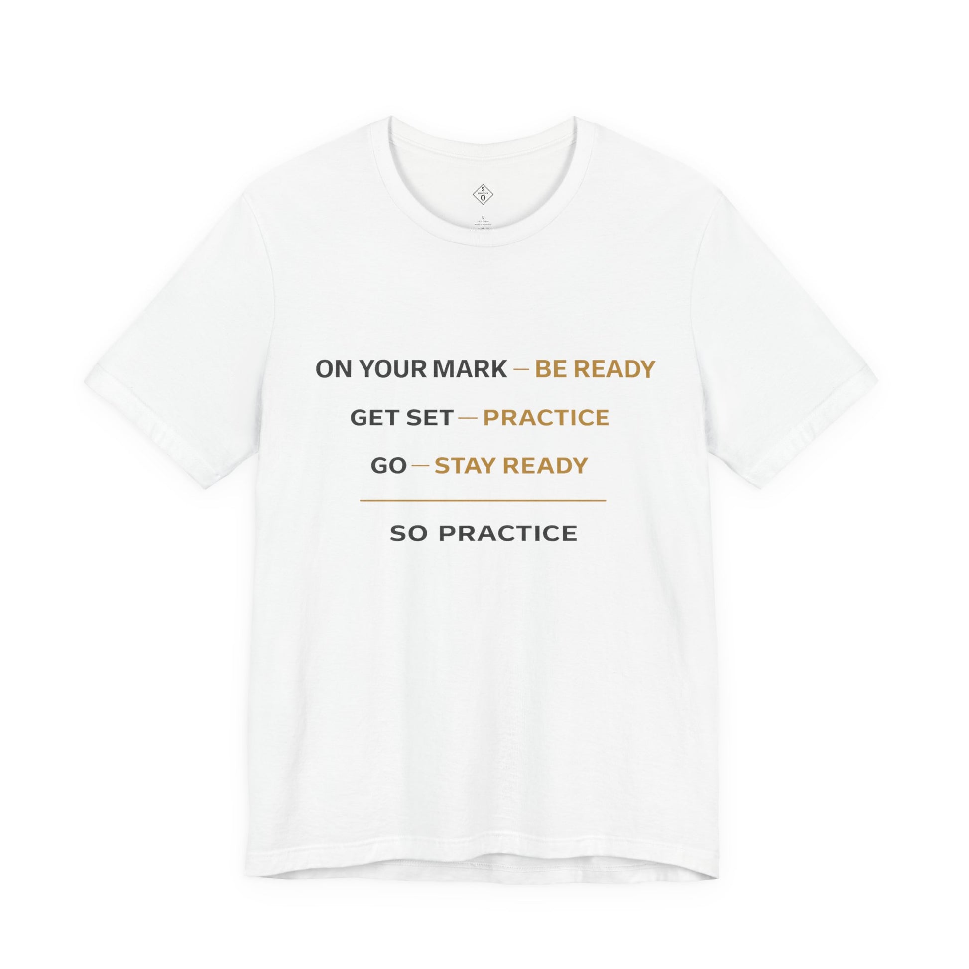 Designed with clean, minimalist typography in white and muted antique gold, this piece is a wearable reminder that growth comes from disciplined practice — not hype.